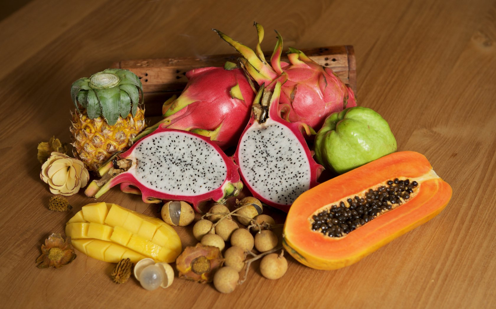 В этом мини-боксе самые популярные из фруктов - Манго, Питахайя, Маракуйя, Рамбутан.